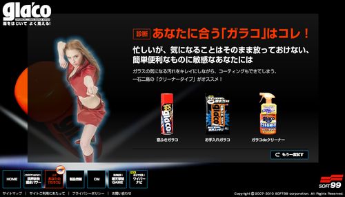 YES/NO形式の質問に答えていけば、あなたにぴったりのガラコが見つかる(はず)というコンテンツ。