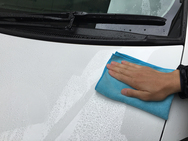 単に流れ落ちるという感覚より、汚れ水を強制的に塗装面から排水しているような感覚でサッと汚れ水が切れていきます。
