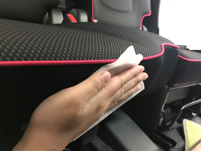 まずは布シートの座面と背もたれの部分を拭いていきます。