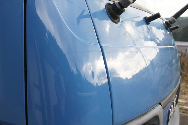 景色も映り込まないほどに劣化していた塗装面が、他の面よりも輝きキレイなツヤが出ています。
