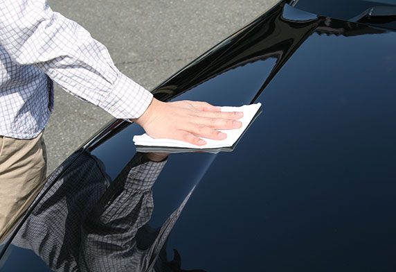2. Fold the sheet into quarters and lightly wipe down the body of the vehicle. Keep refolding the wipe to expose fresh surfaces and avoid spreading any dirt.