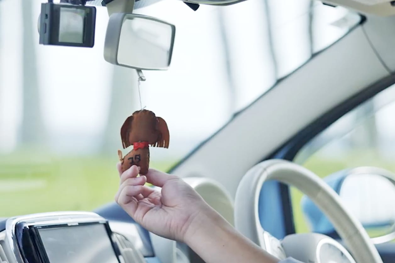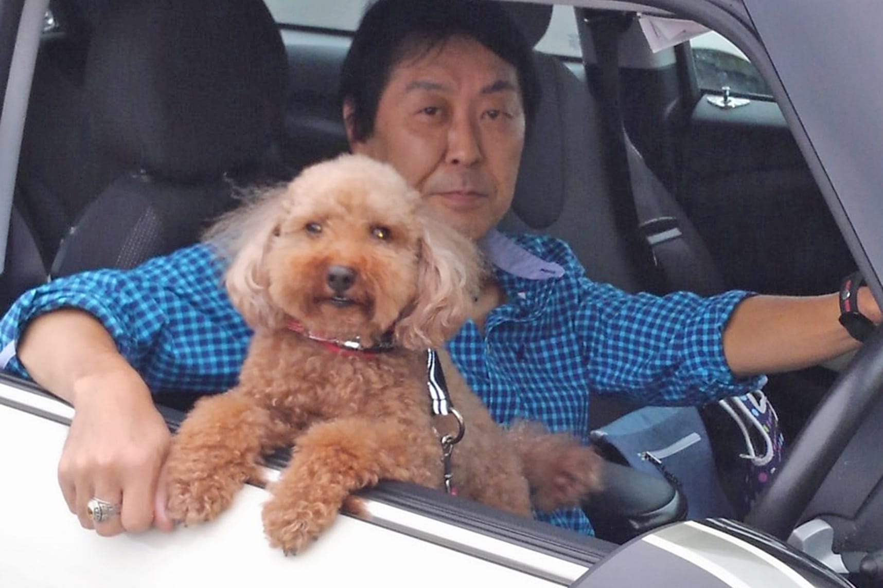バックミラーにぶら下がっているマスコットは、昔実家で飼っていたトイプードルのコタロー。