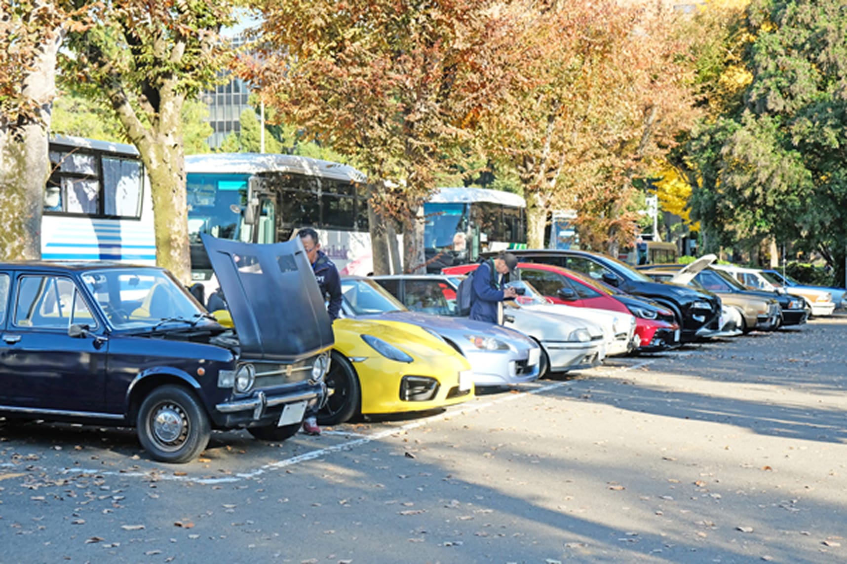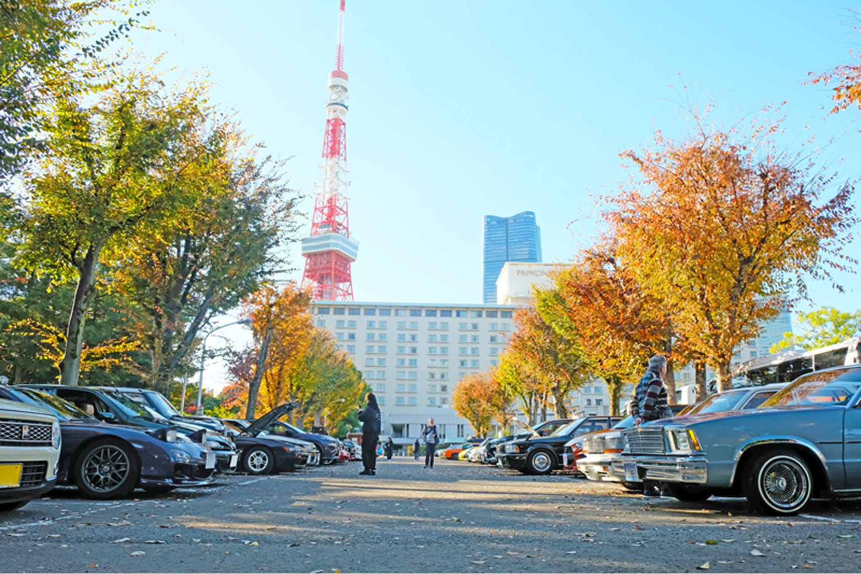 紅葉が映える秋晴れの中、東京タワーを望む絶好のロケーションにクラシックカーやスポーツカー、
