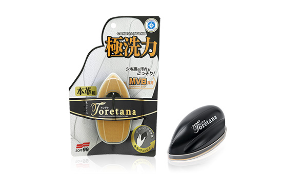 握ってこするだけ、レザーシートのシボの奥までしっかりクリーニング
