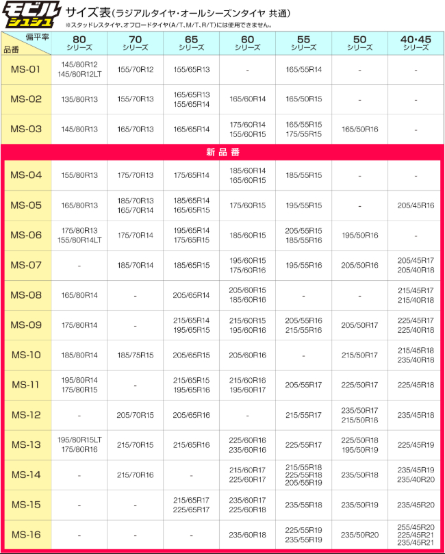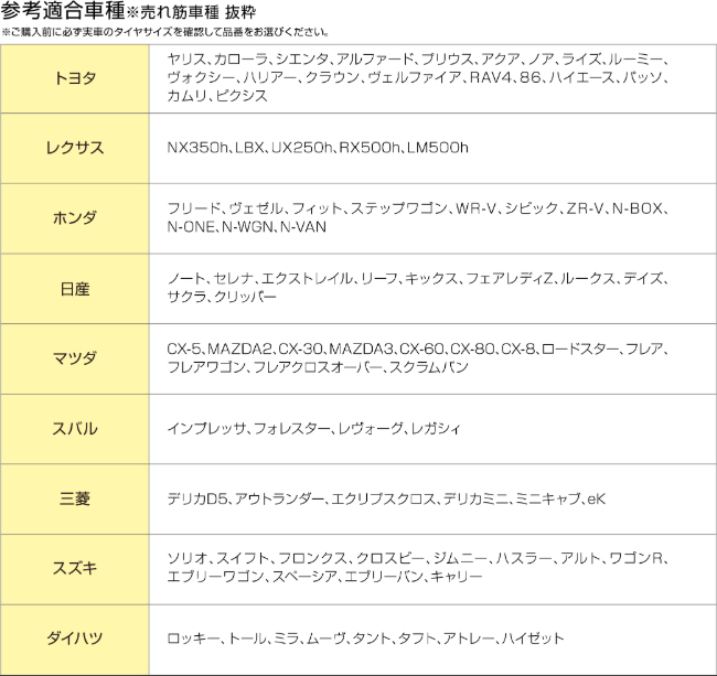 これにより軽自動車や軽ワゴンに加えて、コンパクトカーやミニバン・SUVなど日本国内での販売台数上位車種のタイヤにも装着が可能になりました。