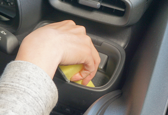 ドアパネルや革シートのシボの奥に入り込んだ日焼け止めや土、砂汚れ・飲みこぼしなどの落ちにくい汚れをスッキリ取り除く、車内の凹凸部専用ブラシ。