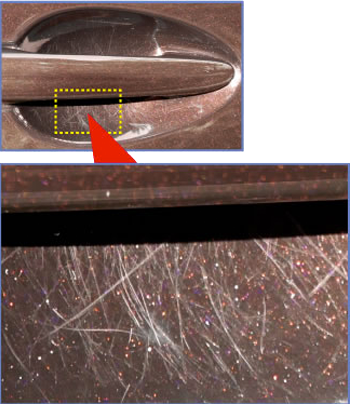 クギや10円玉のように硬い金属で引っかいたわけじゃなく、やわらかい爪で塗装表面がこすれたごく浅いキズがほとんど。